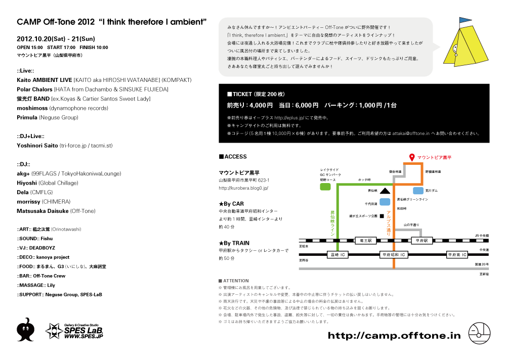 Off-Tone Shop(9月中旬よりCAMP Off-Toneサイトにて販売予定) : http://camp.offtone.in/